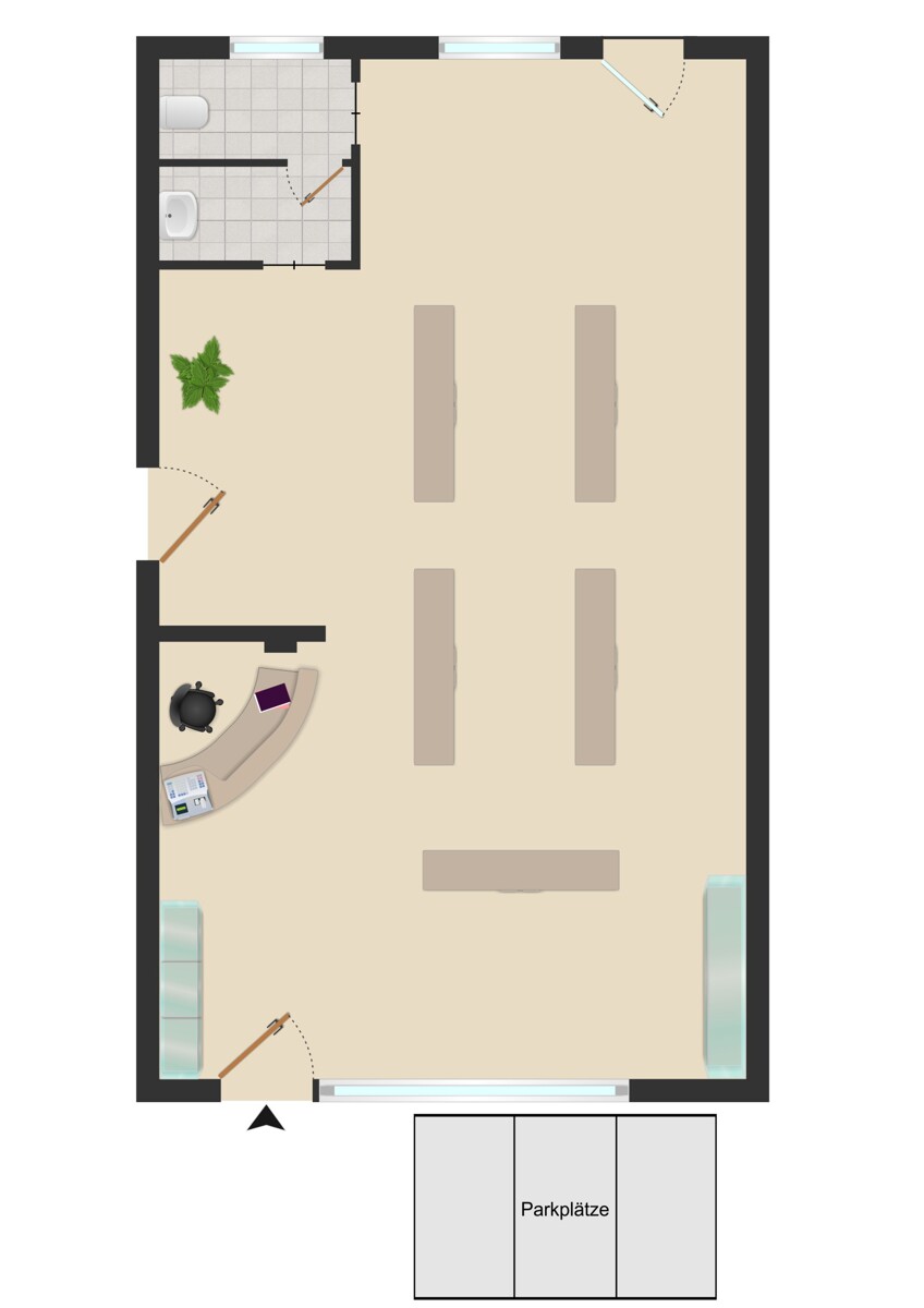 - offene, helle Verkaufsfläche - WC für Mitarbeiter - Kundenparkplätze direkt vor dem Gebäude