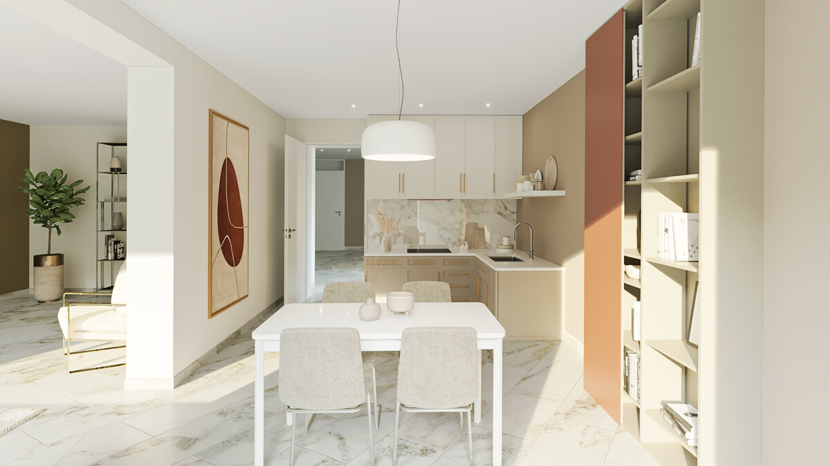 Küche - mit Beispielmöblierung - - Etagenwohnung mit 70,93 m² in Münster zum Kaufen
