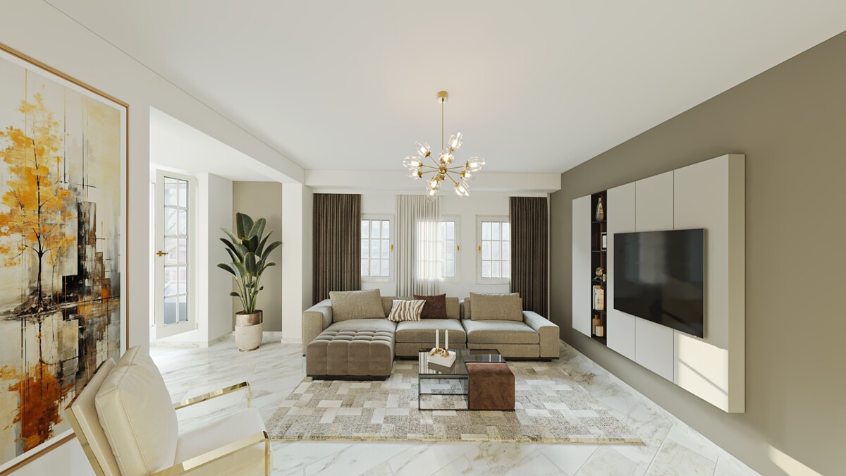 Wohnzimmer - mit Beispielmöblierung - - 2 Zimmer Etagenwohnung zum Kaufen in Münster