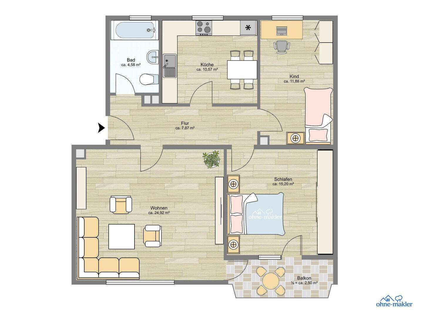 Wohnfläche:ca. 77,50 m²