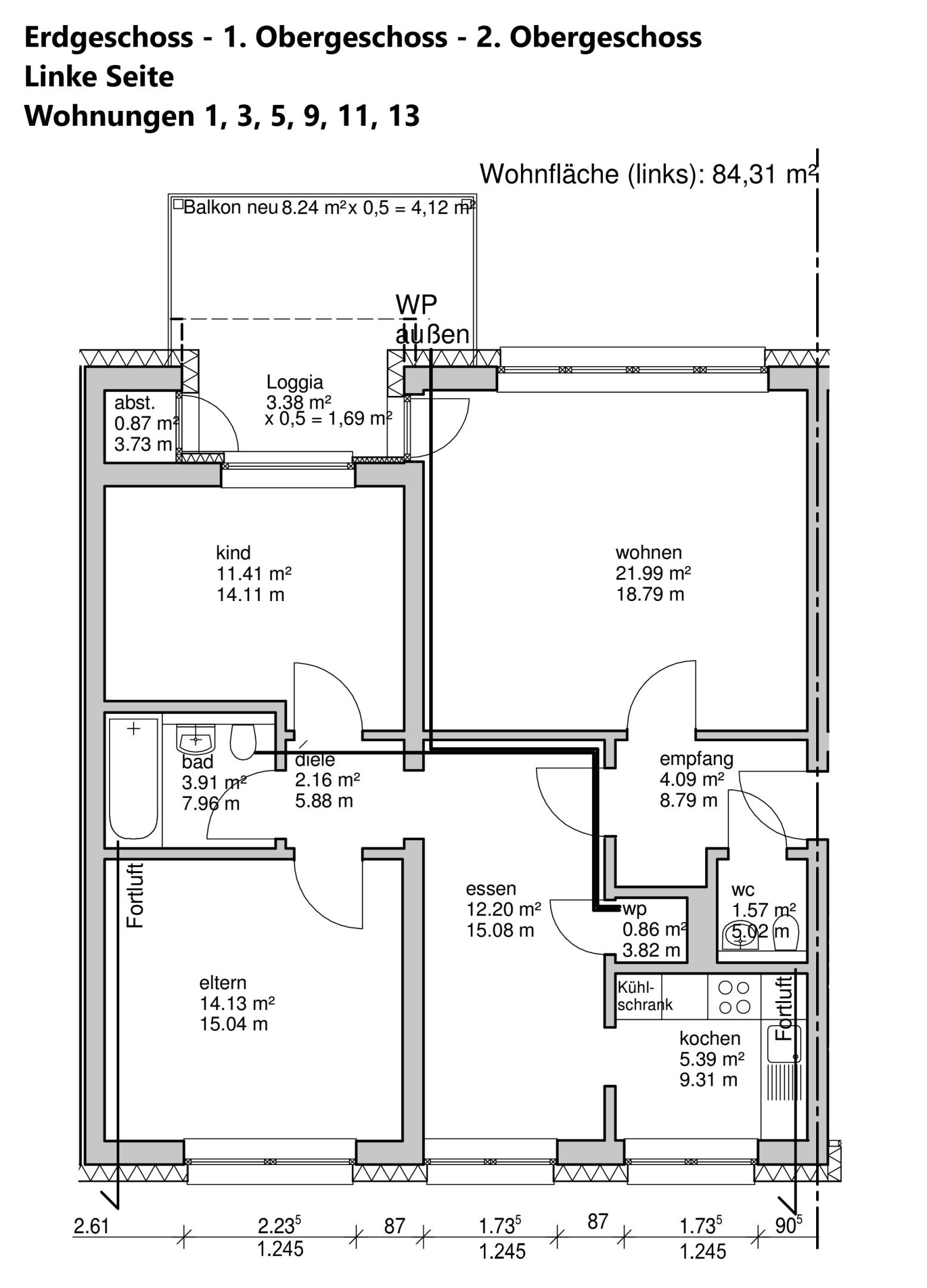 Das Angebot bezieht sich auf die Wohnung 11 im 1. Obergeschoß des Hauses 11. Die Wohnung besteht aus dem attraktiven Wohnraum mit Zugang zum großzügigen Balkon. Von der zentralen Diele erreichen Sie das geräumige Elternschlafzimmer, das schönen Kinderzimmer/Büro, die Küche mit vorgelagertem Essplatz. Die Küche verfügt über eine Einbauküche. Das moderne Wannenbad, das Gäste-WC sowie der Abstellraum vervollständigen das Angebot. Die Wohnfläche beträgt ca. 84, 31 m². Die Wohnung ist derzeit vermietet. Die Mieter bewohnen diese Wohnung seit Ende 2023 und haben von Mietvertrag von 28.12.2000 für eine andere Wohnung im Objekt entsprechend ergänzt. Eine Eigenbedarfskündigung ist entsprechend den gesetzlichen Bestimmungen möglich. Fragen Sie hier Ihren Anwalt. Es besteht die Möglichkeit Fahrradboxen mit Stromanschluß für 6.000 EUR zu erwerben