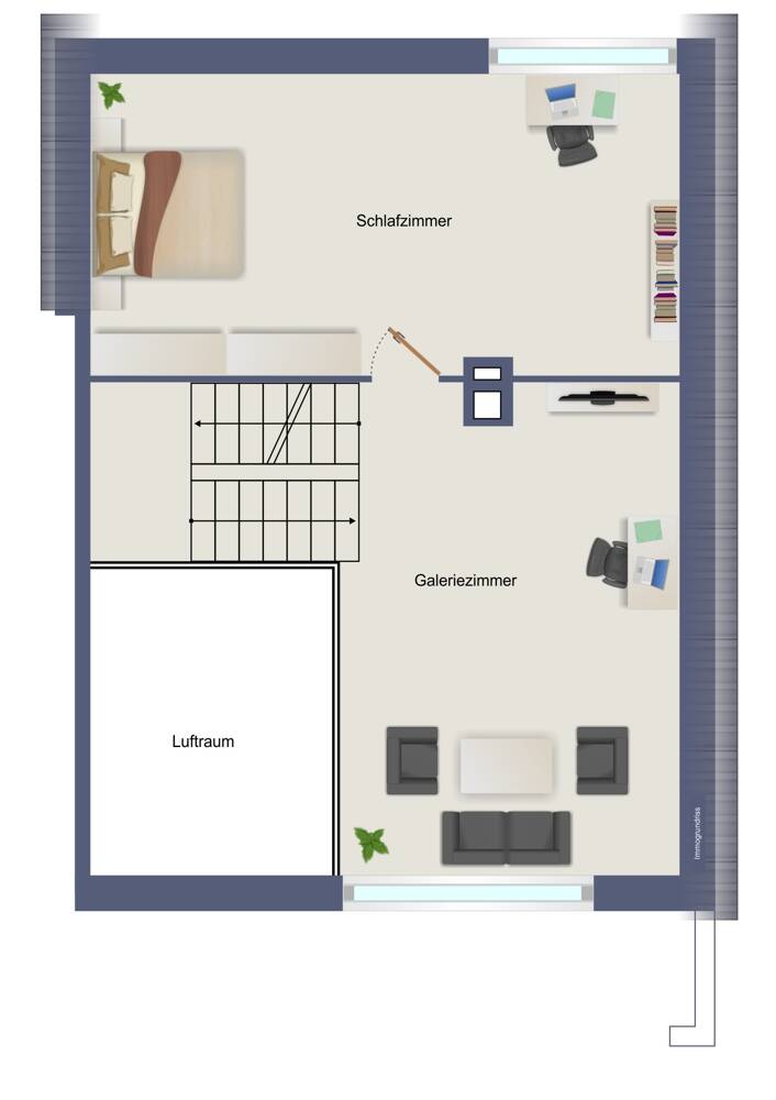• Blick von der Galerie in den Wohnraum -