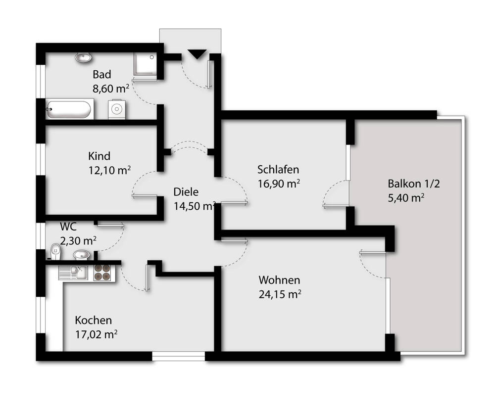 • Bad mit Badewanne -
