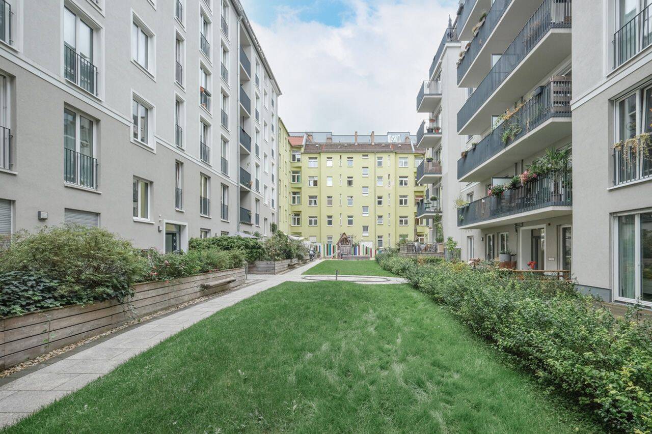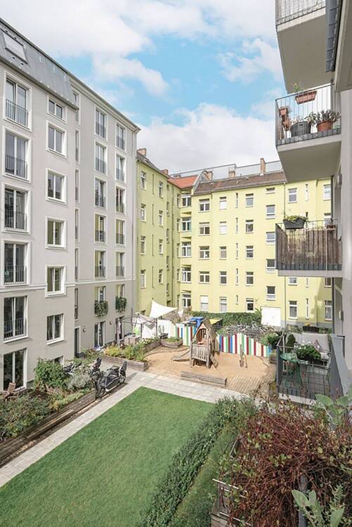 • Blick vom Balkon in den Gemeinschaftsgarten - 3 Zimmer Etagenwohnung in Berlin