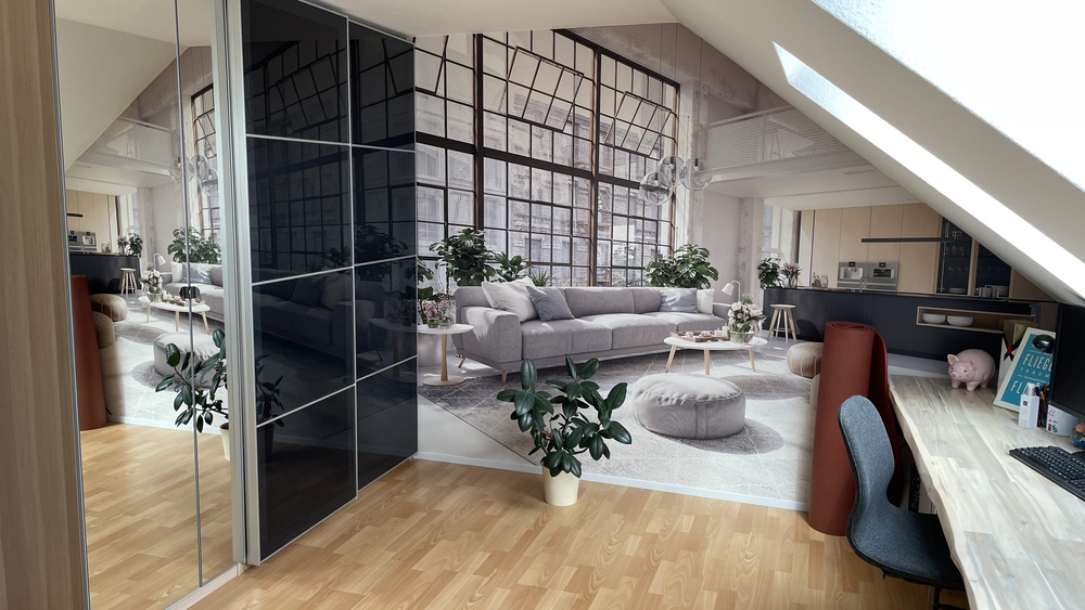 Folgt man vom Erdgeschoss der Treppe nach unten in das Gartengeschoss, stehen neben ausreichender Nutzfläche auch ein weiterer großzügiger, heller Wohnraum mit Zugang zu einer großen weiteren Sonnenterrasse zur Verfügung.