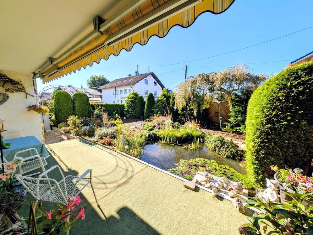 • Terrasse mit Garten und eigenem Teich -