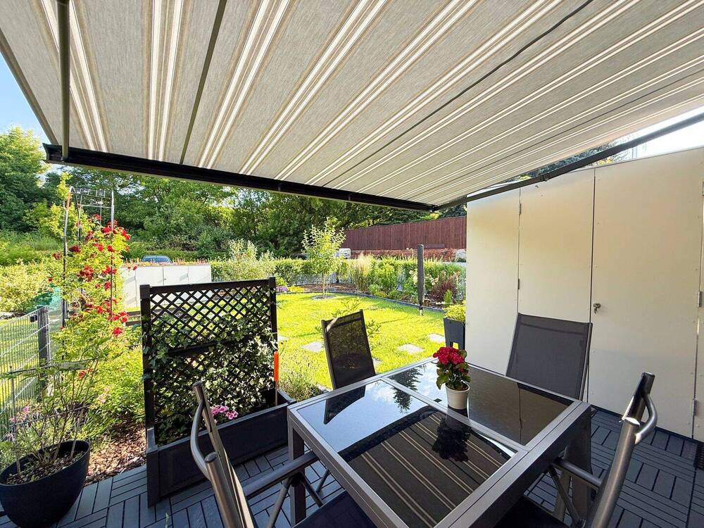 • Markise über der Terrasse - 5 Zimmer Reihenendhaus zum Kaufen in Schkeuditz