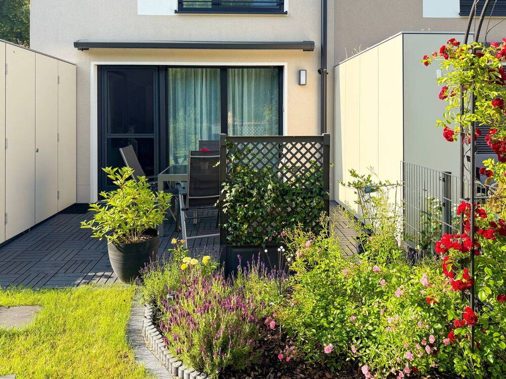 Terrassenansicht - Reihenendhaus mit Stil: 5 Zimmer, Garten, Baujahr 2022 - KfW 55 für Ihre Familie