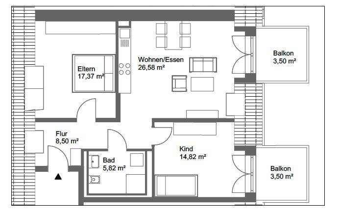 Zimmeranzahl :3 Gesamtgröße :ca. 80,00 m² Wohnfläche :ca. 80,10 m² Baujahr :2025 Frei ab :sofort Etage :2 Balkon :
