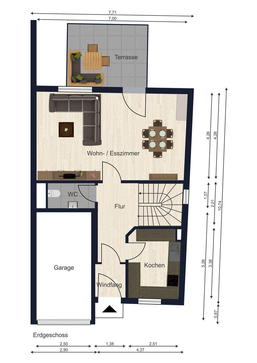 Grundrisse Erdgeschoss - 7 Zimmer Reihenendhaus in Regensburg