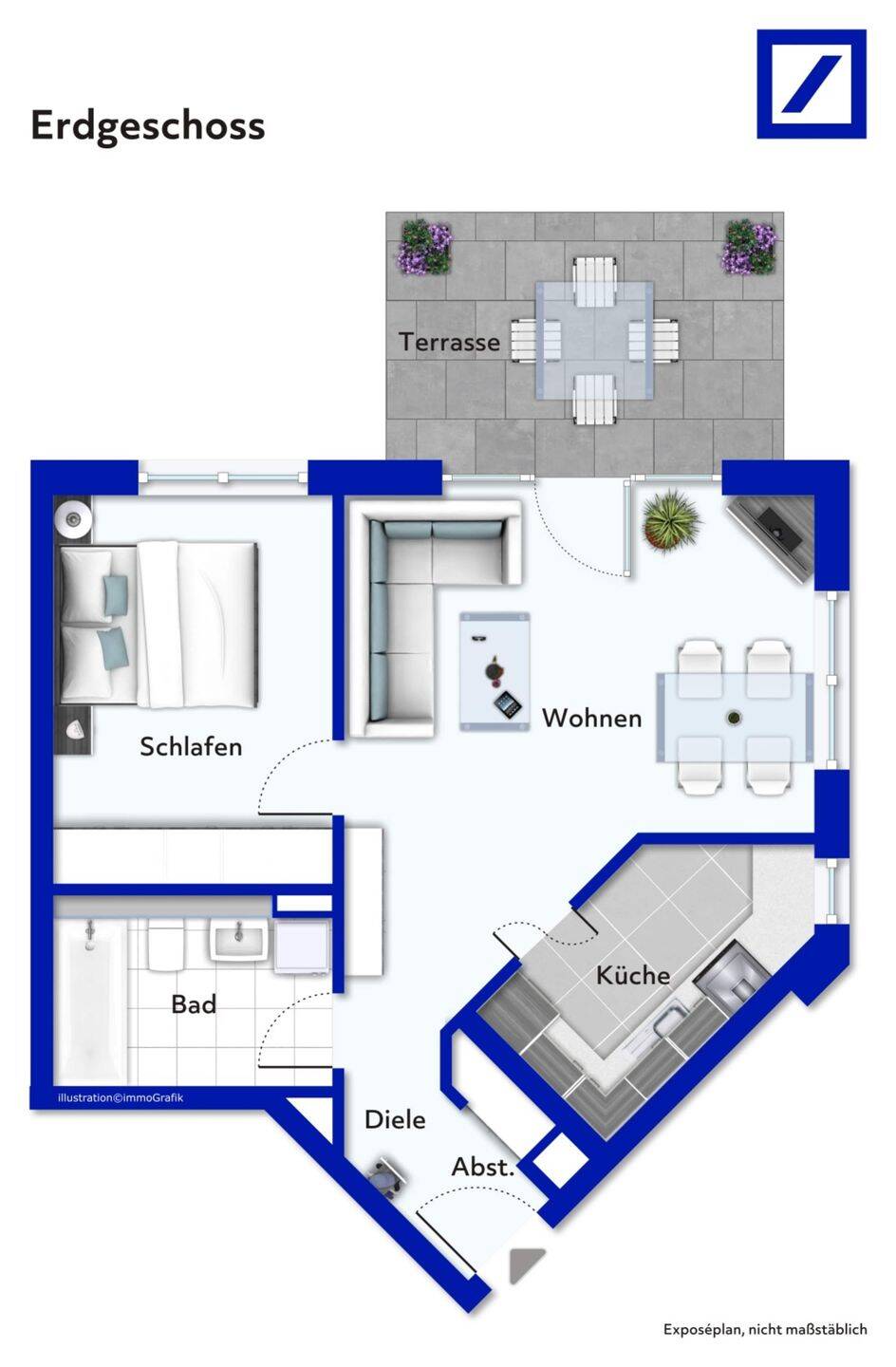 Erdgeschoss Terrasse - Terrassenwohnung mit 52,20 m² in Düsseldorf zum Kaufen