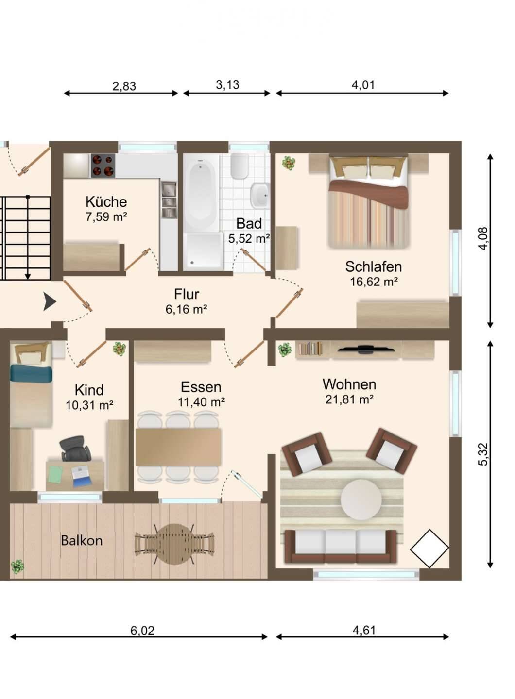 Wohnfläche:ca. 85,00 m²