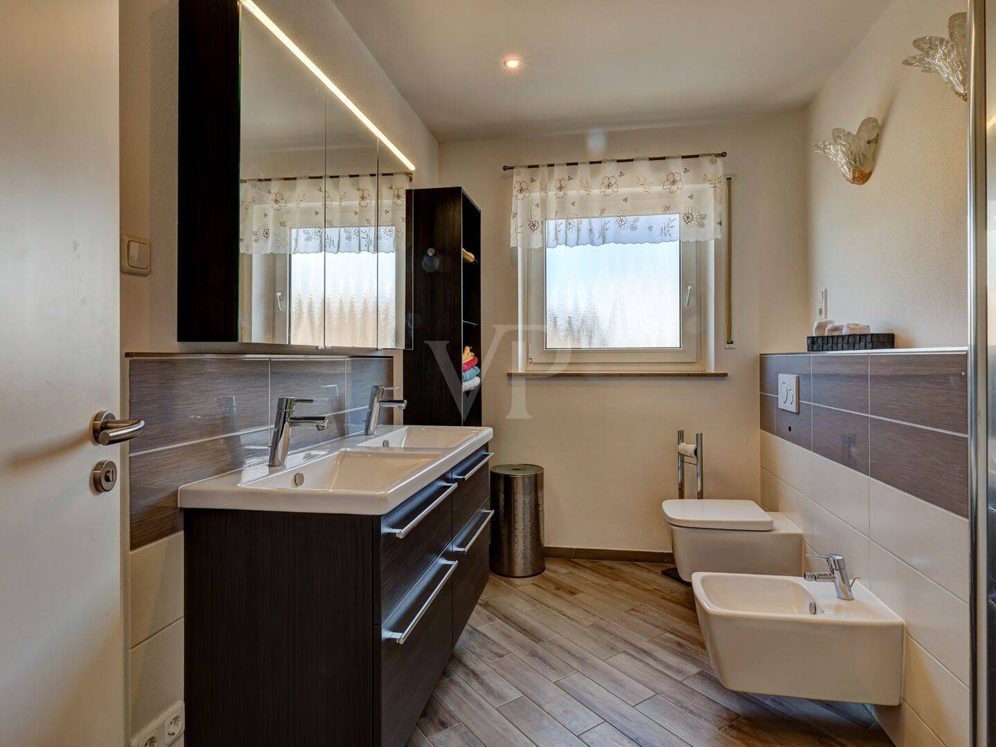 • Bad mit Doppelwaschtisch und bodengleicher Dusche -
