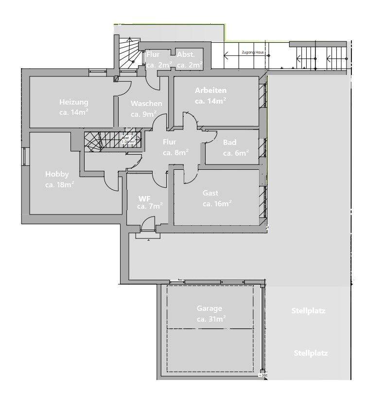 • Doppelgarage mit Blick auf Eingang Untergeschoss -