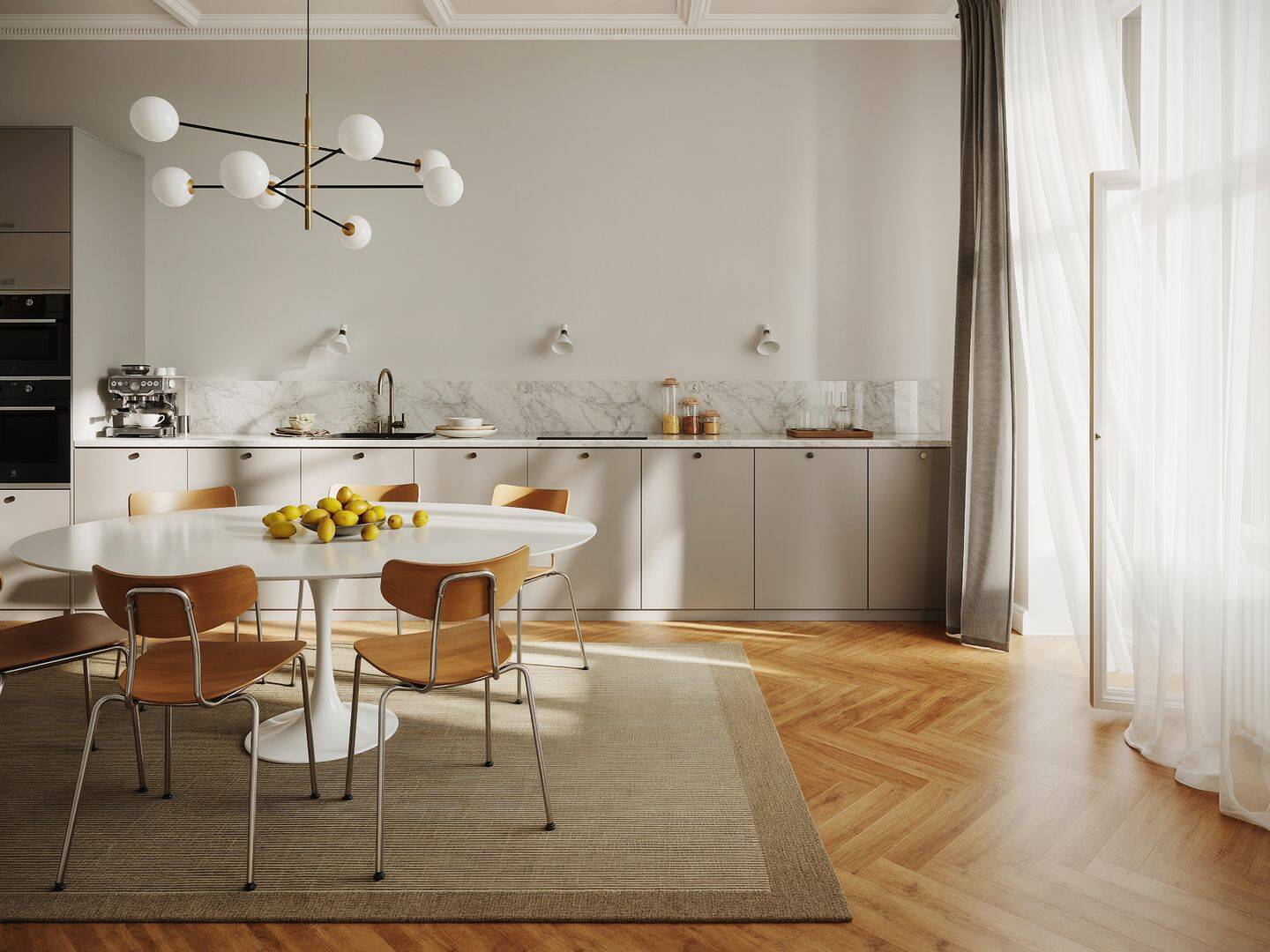 • Küche mit großzügigem Essplatz und Zugang zur Loggia - Beispielmöblierung -