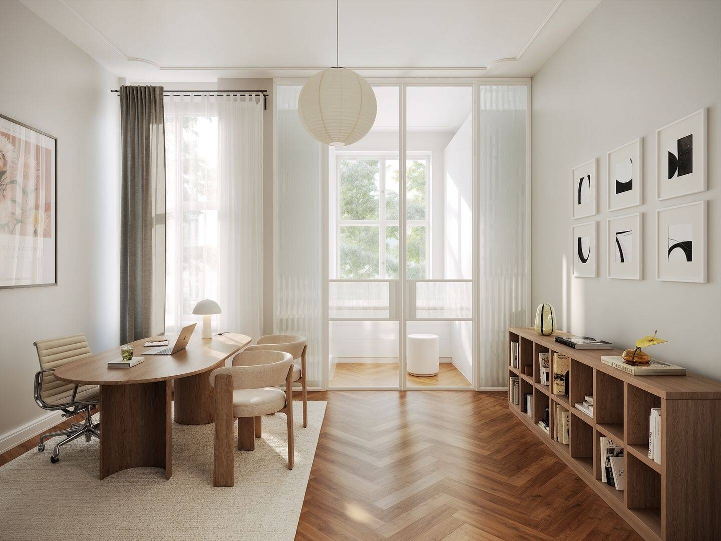 • Freundliches und helles Zimmer zum Garten hin - Beispielmöblierung als Büro -