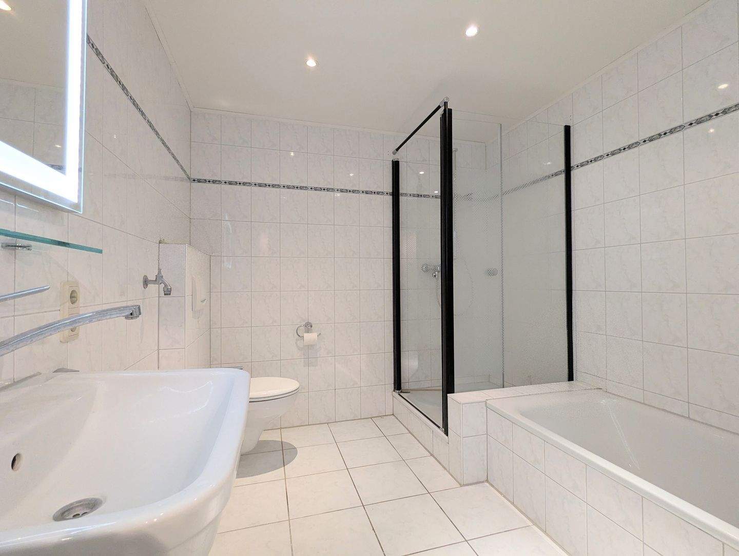 • Badezimmer mit Badewanne und Dusche. -