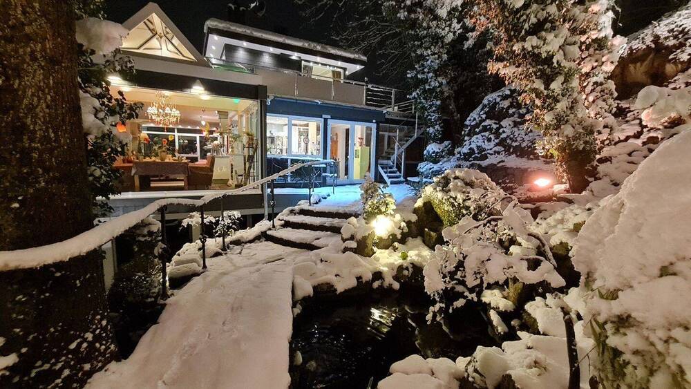 • Hausansicht v. Teich Winter -