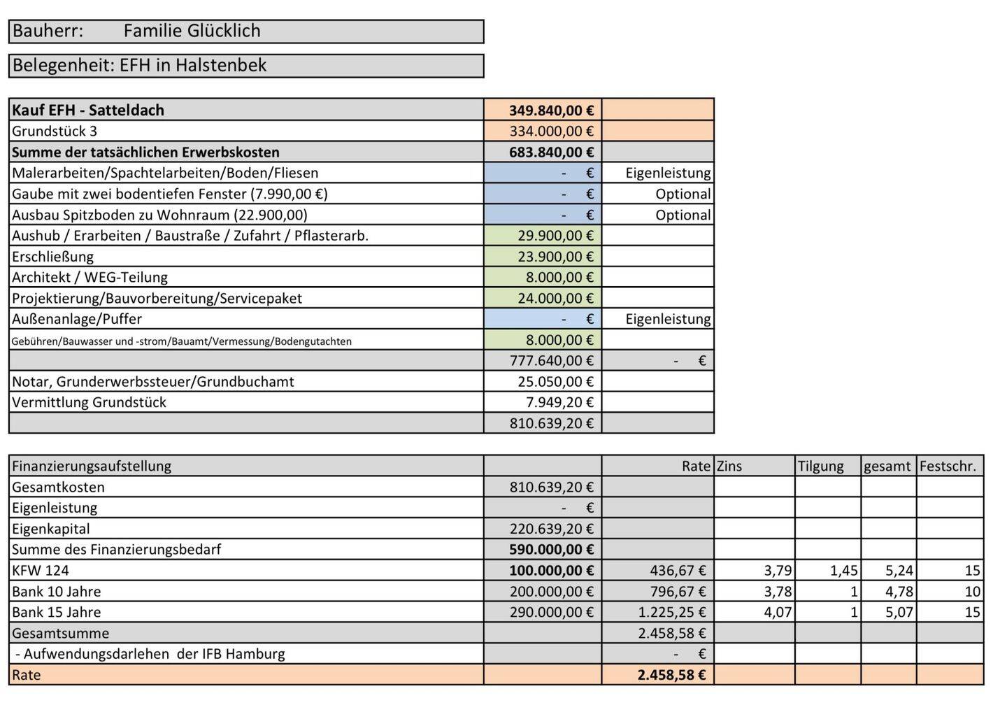 Baukostenaufstellung - 5 Zimmer Einfamilienhaus in Halstenbek