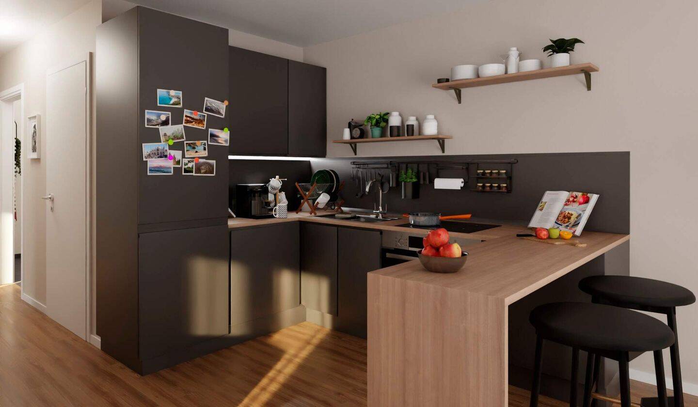 Die offene Wohnküche lädt zu gemeinsamen Mahlzeite -