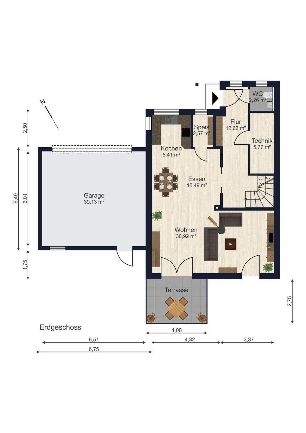 Grundrisse Erdgeschoss - 5 Zimmer Doppelhaushälfte in Oberschneiding