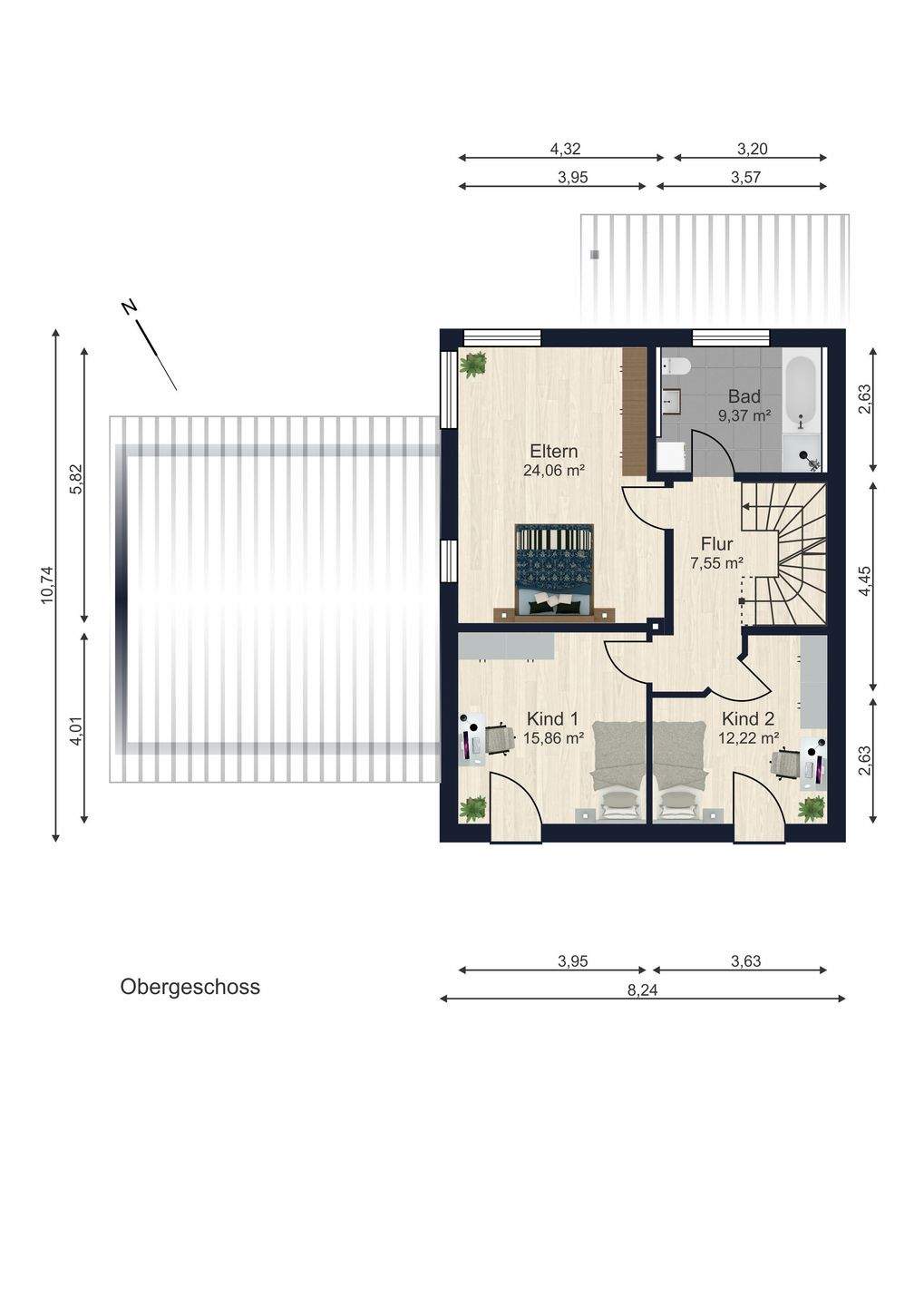 Grundrisse Obergeschoss - Doppelhaushälfte mit 155,00 m² in Oberschneiding zum Kaufen