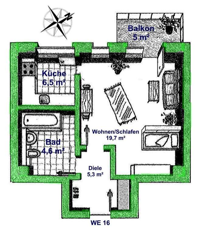 Single-Wohnung mit Balkon - 83.000,00 EUR Kaufpreis, ca.  38,60 m² Wohnfläche