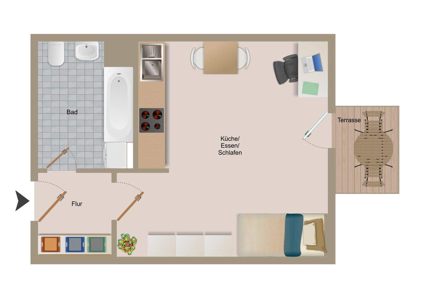 • Wohn-/Ess-/Schlafbereich -