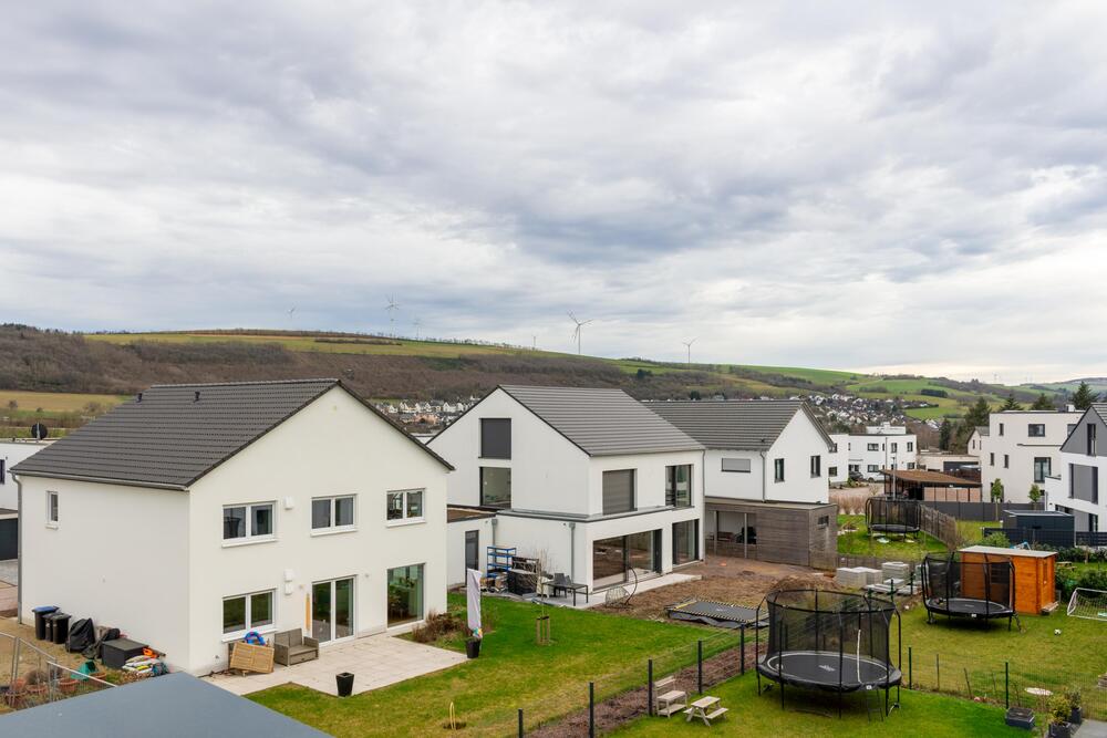 Top Wohnlage Tarforster Höhe - Neues Reiheneckhaus mit Keller, schöner Dachterrasse mit herrlicher Sicht und schönem Garten im Passivhausstandard mit Top Energiekonzept - Darlehen Familienförderung ab 0, 35 % möglich Top Lage - Trier, Tarforster Höhe Baugebiet BU 14 In attraktiver Lage mit toller Infrastruktur entstehen neue Stadthäuser im Passivhausstandard mit KFW 40 Förderung. Die Kombination von moderner Technik und hochwertiger Isolierung führt zu sehr günstigen Heizkosten bzw. Nebenkosten. Im Angebot ist eine Luftwasserwärmepumpe einschließlich einer zentralem Warmwasserversorgung für Bäder und Küchen. Zusätzlich erhalten die Häuser eine Photovoltaikanlage mit ca. 3, 1 KWp auf dem Flachdach zur Unterstützung der Heizung, Warmwasser sowie dem täglichen Strombedarf. Somit entsteht ein ein modernes energetisch hochwertiges Haus. Alle ökologischen Energiequellen können genutzt werden, um möglichst energetisch autark zu werden. Als Sonderwunsch kann die PV Anlage auf 5, 1 KWp aufgerüstet werden und ein Batteriespeicher mit min ca. 5, 1 KWh Speicher erworben werden. Alle Häuser sind voll unterkellert und verfügen über schöne Terrassen und Dachterrassen. Von den Dachterassen haben Sie eine schöne Aussicht.