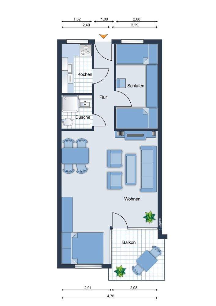 Wohnfläche:ca. 47,00 m²