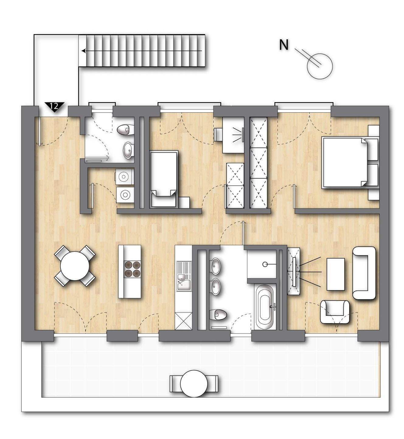 Wohnen/Kochen/Essen - Zentrumsnahe 3,5-Zimmer-Neubauwohnung mit Dachterrasse
