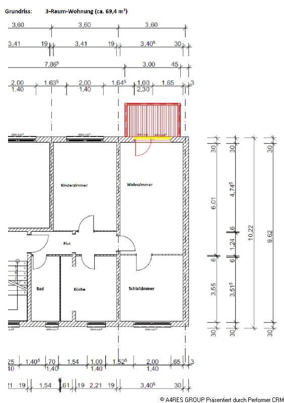 Wohnfläche: | ca. 69,40 m² |