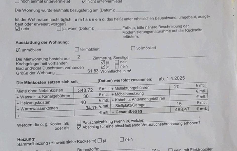 Angebot zur Miete