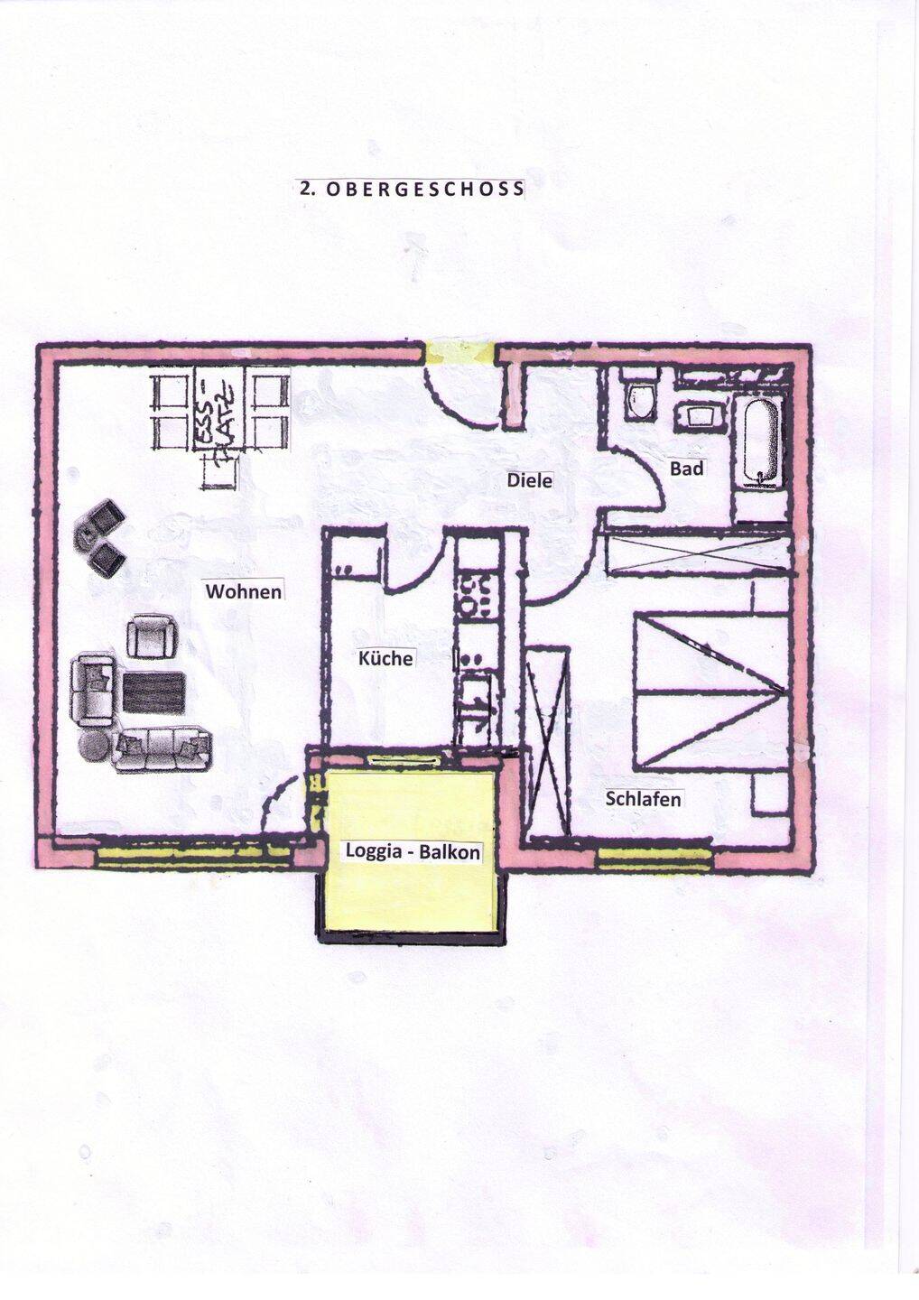 18- Haus-2 Zi.-ETW-2 OG. Groß-Krotzenburg .JPG - Schöne 2 Zimmer-Wohnung mit Balkon und separatem Hobby- Arbeitsraum und Garage, in guter und ruhiger Wohnlage von Großkrotzenburg.