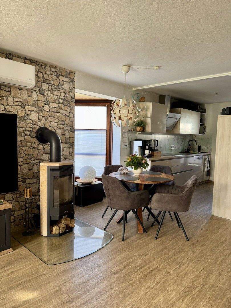 • Kaminofen mit Essbereich -