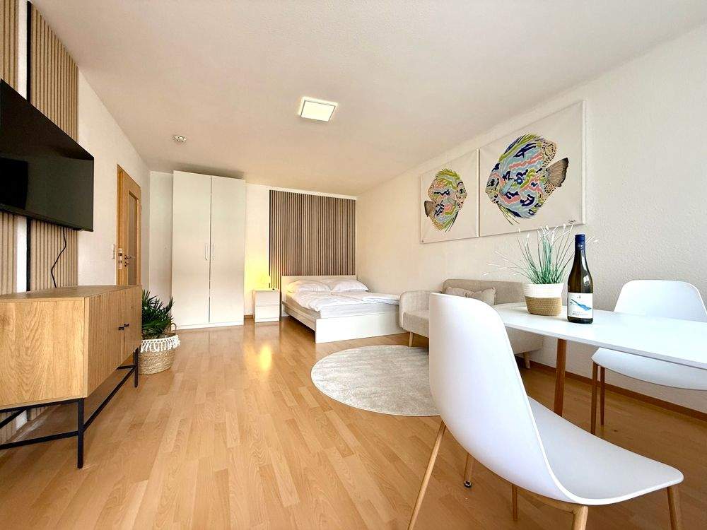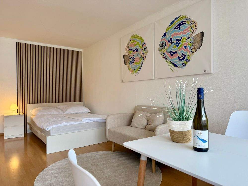 Sie befinden sich hier: Vollmöblierte 1-Zimmer-Wohnung mit Balkon & TG-Stellplatz - Nähe MTU, ZF, Airbus & DHBW! in Friedrichshafen / Fischbach Bodensee - 25A2Z6KAGXCL | 1A-Immobilienmarkt.de