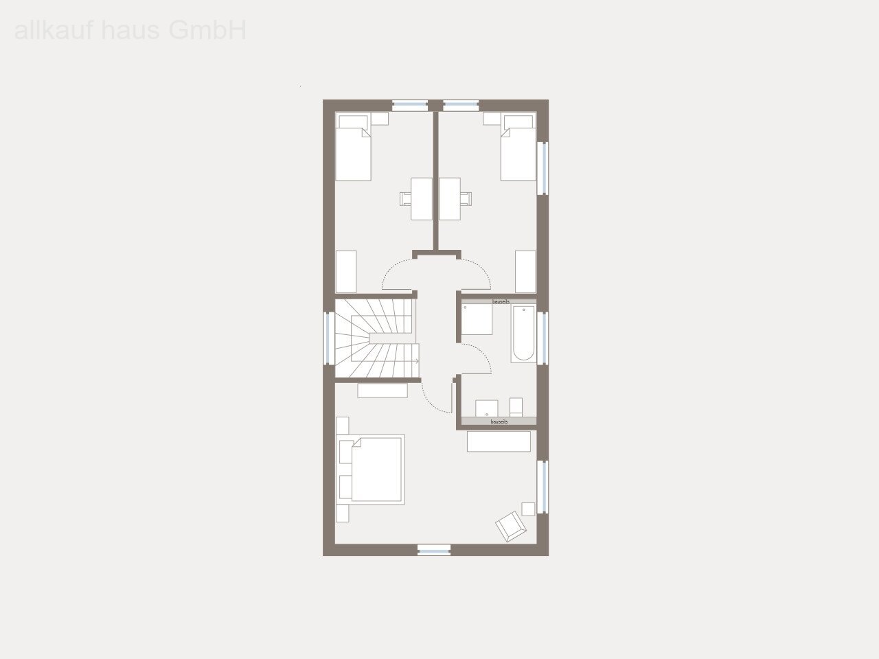 Im Erdgeschoss trennen großzügiger Flur und durchdachte Raumaufteilung den Wohn- und Essbereich voneinander - so bleibt dein Zuhause immer offen, hell und harmonisch. Die intelligent platzierte Treppe nutzt jeden Quadratmeter perfekt aus. Ob Familienzeit, Homeoffice oder Rückzug - hier findet alles seinen Platz.