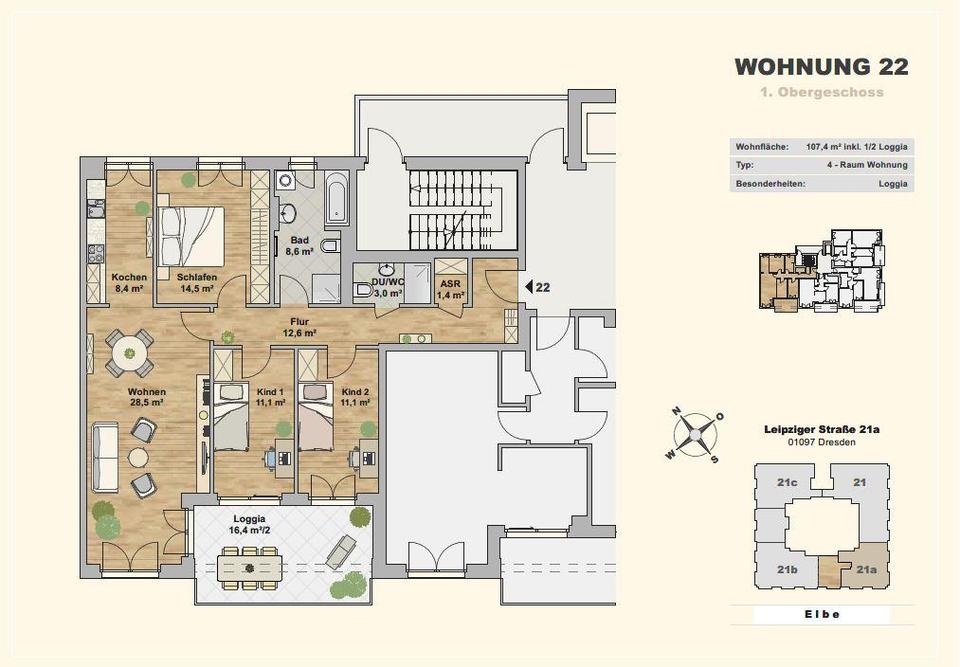 Sie befinden sich hier: Moderne 4-Raumwohnung mit schönstem Blick auf die Elbe wartet auf Sie! in Dresden Neustadt - 3215711352-203-3837 | 1A-Immobilienmarkt.de