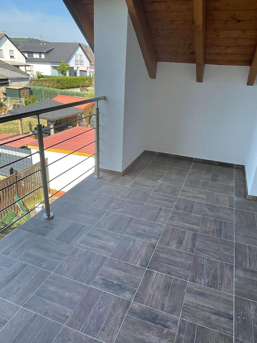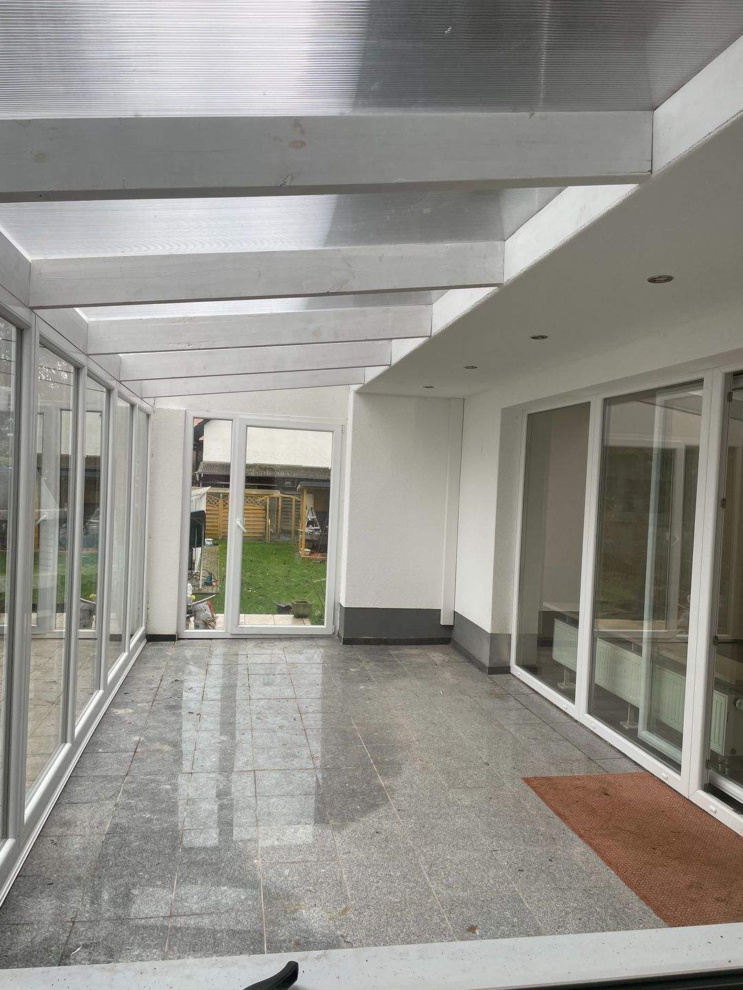 • überdachte Terrasse mit Blick in den Garten -