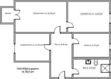 Wohnfläche: | ca. 58,40 m² |