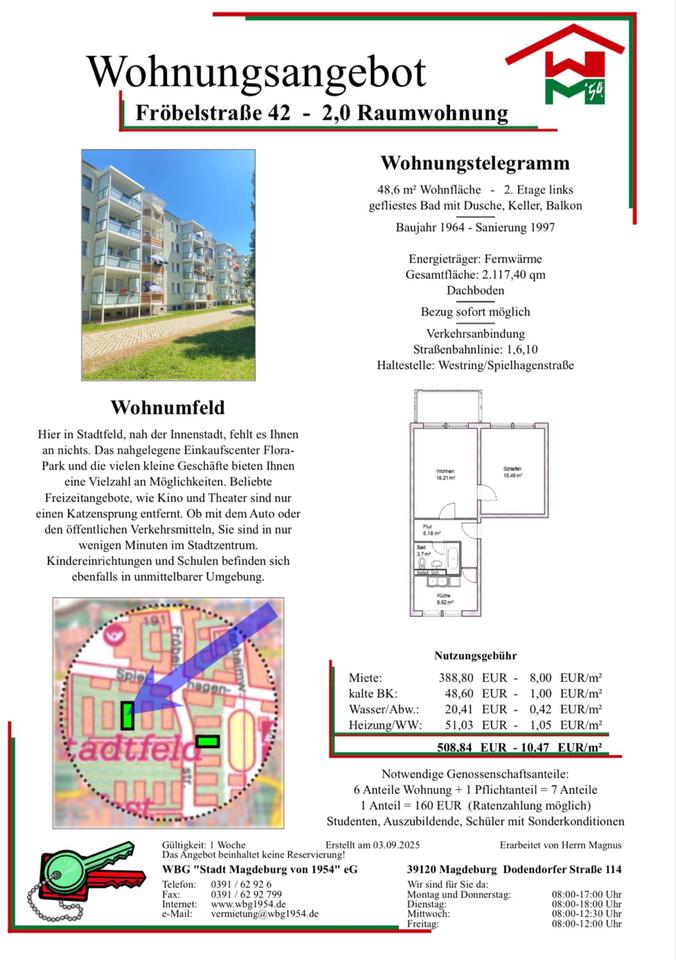 Sie befinden sich hier: Nachmieter 2-Raumwohnung ab 03.01.-15.01. in Magdeburg Diesdorf - 3216244816-203-2232 | 1A-Immobilienmarkt.de