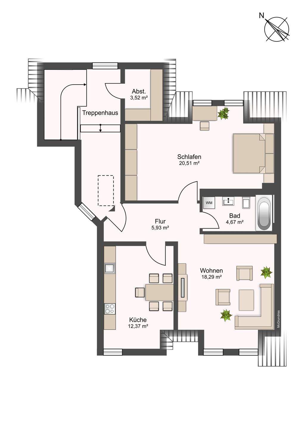 Wohnfläche: | ca. 54,60 m² |