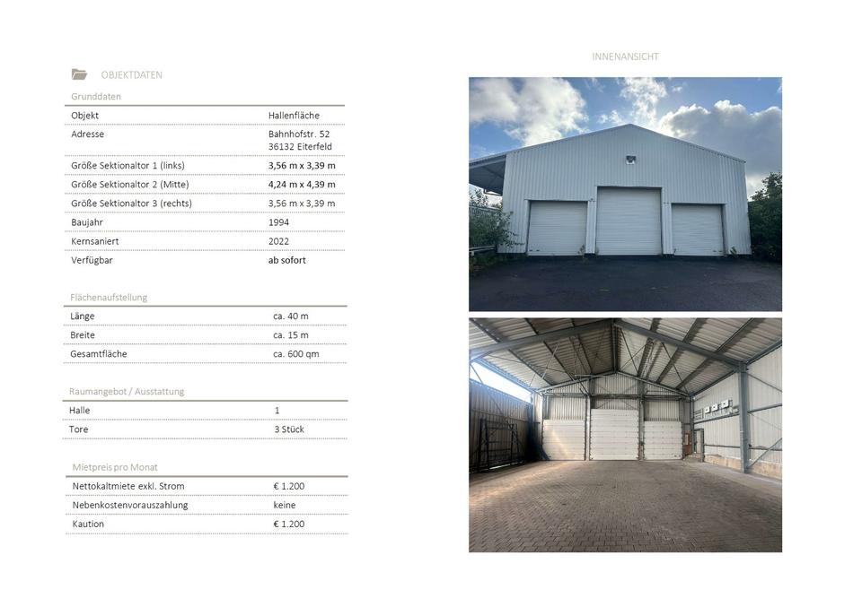Sie befinden sich hier: Hallenfläche Halle mit 3 x Rolltor in Eiterfeld in Eiterfeld - 3217400861-277-4625 | 1A-Immobilienmarkt.de