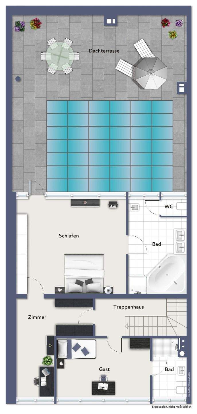 • Schafzimmermit Ausgang Dachterrasse -