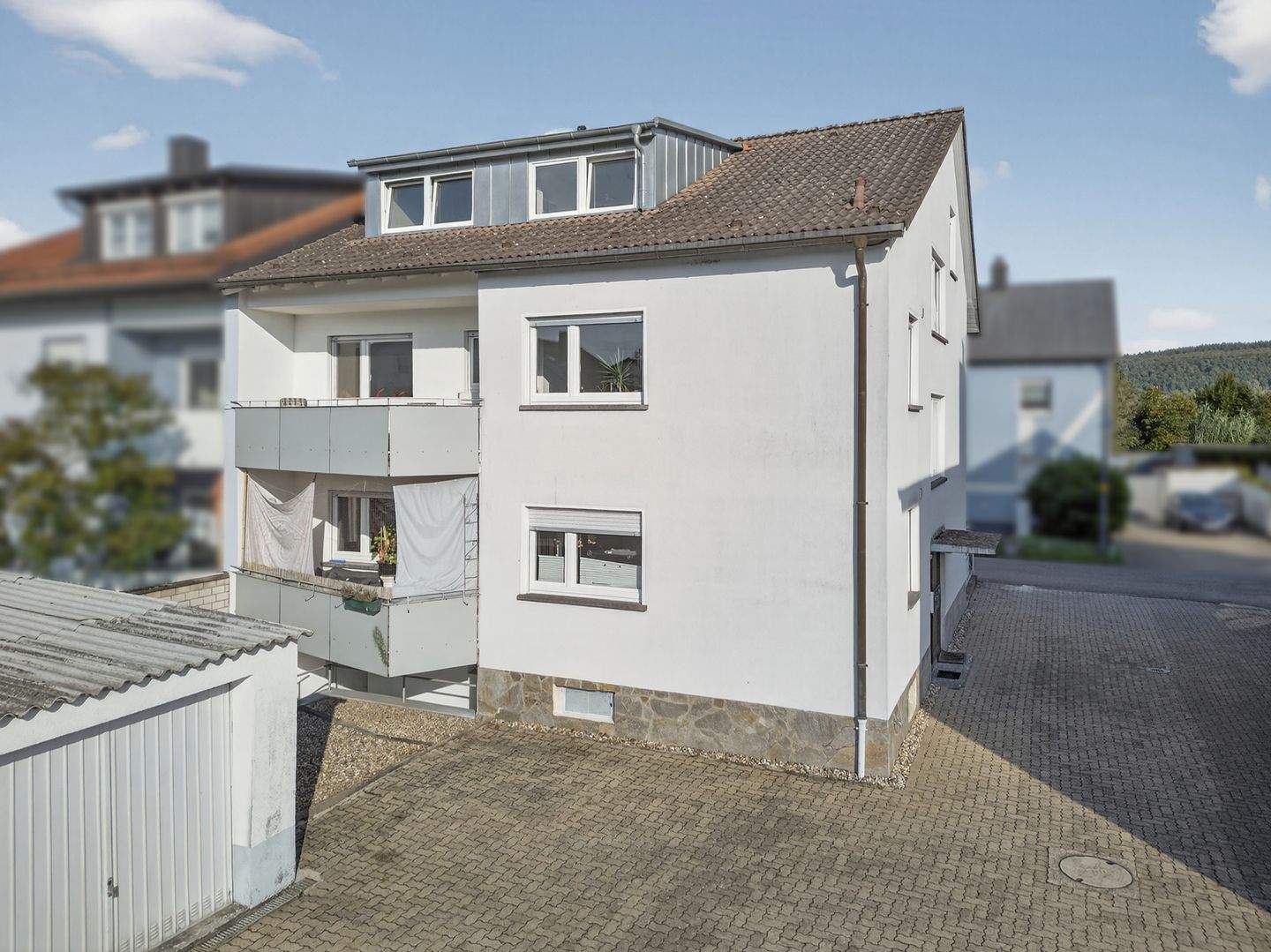 Gepflegtes 3-Familienhaus mit Balkonen, Garagen und großem Hof in ruhiger Lage