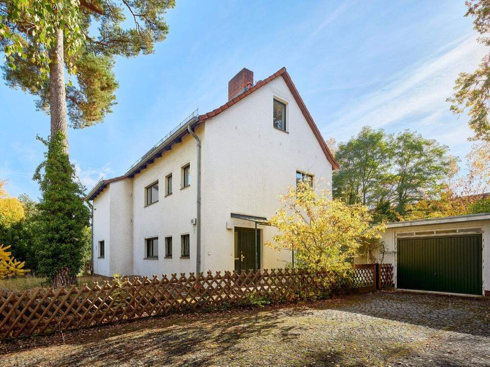 • Hausansicht mit anliegender Garage - 7 Zimmer Einfamilienhaus zum Kaufen in Berlin