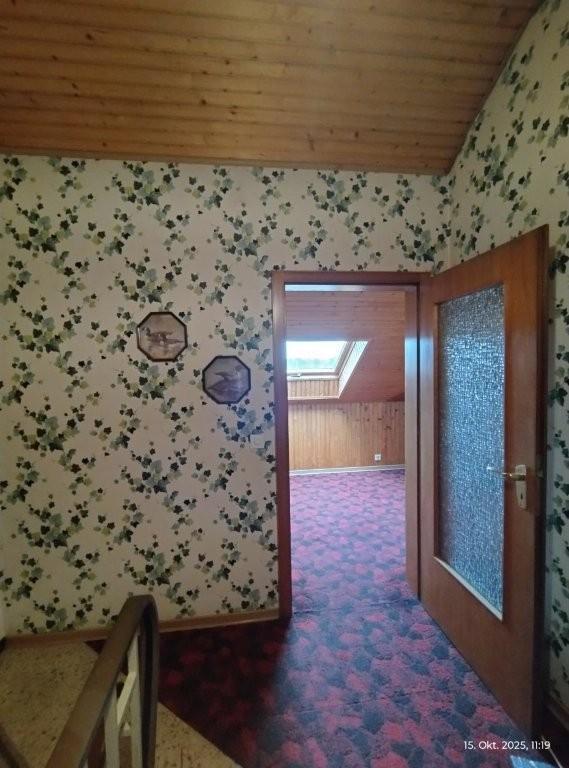 * Wandbeläge: Überwiegend Tapete, im Keller verputzte Wandoberflächen. In Bad und WC Fliesen.