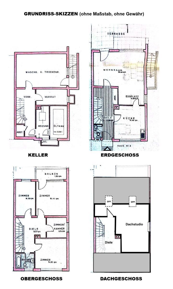 Grundriss-Skizzen sind ohne Maßstab und dienen nur einer groben Orientierung. Für die Richtigkeit der Flächen wird keine Gewähr übernommen. Es wird empfohlen, diese vor Ort nochmal zu überprüfen. Maßgeblich sind nur die bei der Besichtigung augenscheinlichen Tatsachen. Möbel und sonstige Gegenstände die in Plänen eingezeichnet oder auf Fotos abgebildet sind, sind nicht Teil des Kaufgegenstandes. Änderungen und Zwischenverkauf sind vorbehalten.