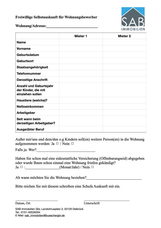 Angebot zur Miete