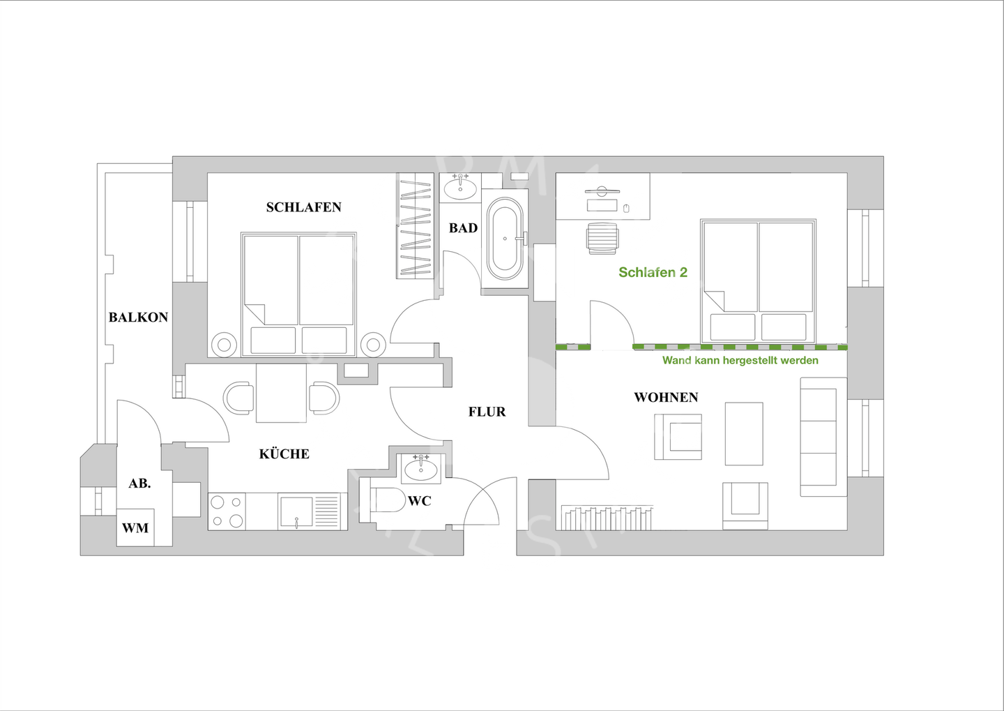 Grundriss - Option 3 Zimmer -